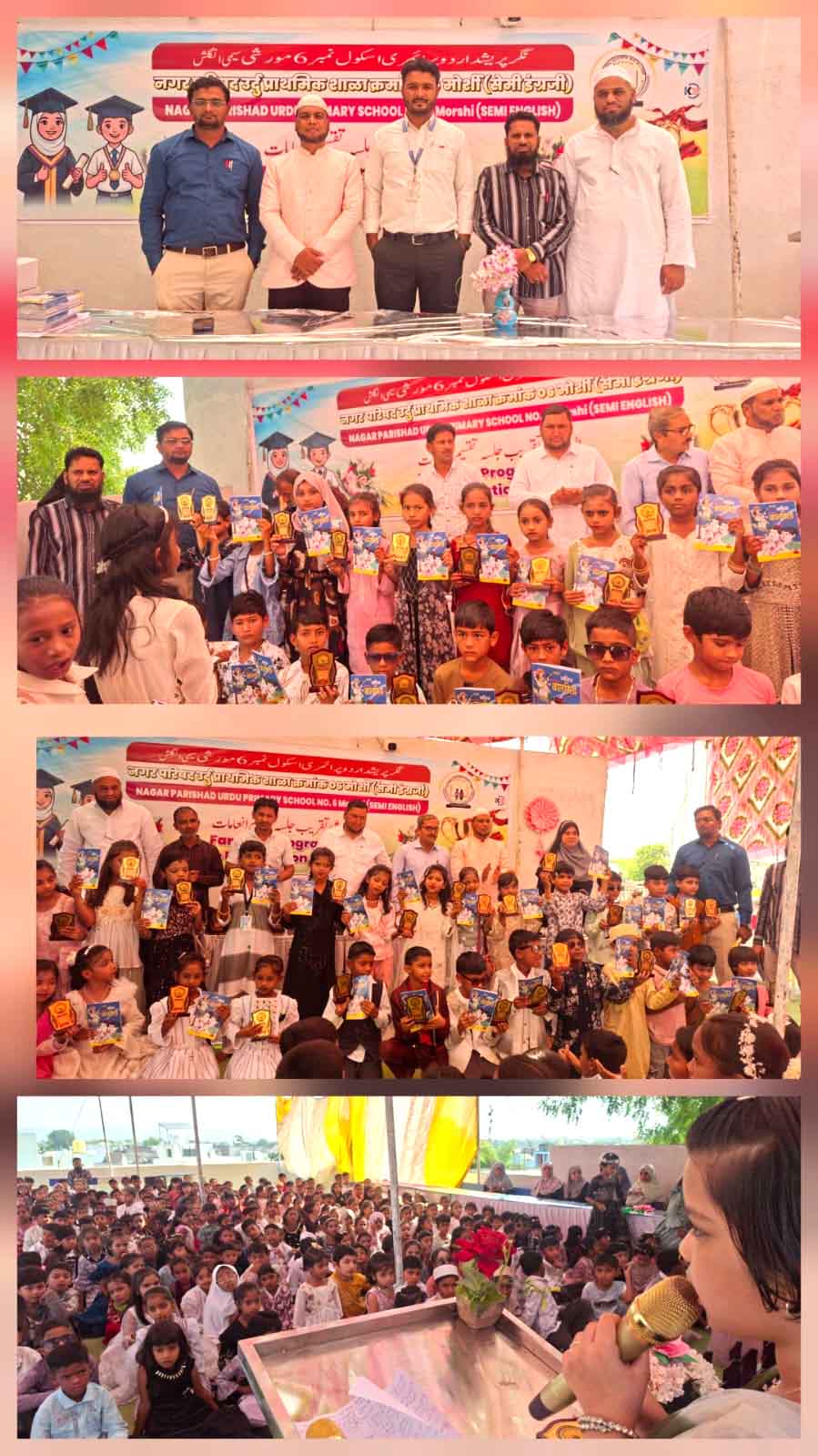 امراؤتی:26؍اپریل (این ایس بیگ)مقامی نگر پریشد اردو پرائمری اسکول نمبر 6، مورشی ۔تعلقہ مورشی ضلع امراؤتی میں ایک پروقار الوداعی تقریب اور جلسہ تقسیمِ انعامات و اسنادکا انعقاد کیا گیا، جس میں طلبہ کی تمام سال کی بہترین کارکردگیوں کی حوصلہ افزائی کی گئی۔ تقریب کا باقاعدہ آغاز تلاوتِ قرآن پاک، حمدِ باری تعالیٰ، دعا اور نعتِ پاک سے کیا گیا۔تقریب کی صدارت مدرسہ ھذا کے صدر مدرس جناب محمد صادق محمد رفیق صاحب نے فرمائی۔ بطور مہمانِ خصوصی نگر پریشد مورشی کے ممبر عالی جناب نعیم بھائی اور سبیہ عرشی باجی نے شرکت کیں اور طلبہ کی حوصلہ افزائی کرتے ہوئے انہیں زندگی کے اگلے سفر اور اپنی منزل مقصود کے حصول کےلیے دعاؤں سے نوازا۔ تقریب میں مدرسہ انتظامیہ کمیٹی(SMC) اسکول مینیجمنٹ کمیٹی کے اراکین ذاکر بیگ صاحب، پرویز بھائی صاحب، نغمہ باجی، عرشی باجی اور صائمہ باجی صاحبہ نے بھی بطور مہمان شرکت کیں۔نظامت کے فرائض معلم اعجاز سر نے نہایت خوش اسلوبی سے انجام دیے۔ اس موقع پر سیکشن ‘بی’ کے انچارج محمد قمر اقبال سر نے پروگرام کے اغراض و مقاصد پر روشنی ڈالی۔ اسکول کے دونوں سیکشن (A اور B) کے اساتذہ نے پروگرام کو کامیاب بنانے میں بھرپور تعاون کیا۔ پروگرام کے دوران طلباء و طالبات نے جوش و خروش کے ساتھ نظمیں، گیت، تقاریر اور اشعار پیش کیے اور اپنی صلاحیتوں کا لوہا منوایا۔ ان بچوں کی تربیت اور رہنمائی میں مشتاق سر اور نزہت باجی صاحبہ نے کلیدی کردار ادا کیا۔پروگرام کے اختتامی مرحلے میں مہمانانِ خصوصی اور SMC ممبران کے دست مبارک سے ٹرافیز اور ‘بال متر’ کتابیں بطور انعام دی گئیں۔ اساتذہ اکرام بشمول معاون معلمات سلمہ باجی صاحبہ، ریشمہ باجی صاحبہ، خاشیہ باجی صاحبہ, مہک باجی صاحبہ معاویہ باجی صاحبہ ، شدما باجی صاحبہ اور تبسم باجی صاحبہ نے نہایت خوش اسلوبی اور منظم طریقے سےانتظامی امور کی انجام دہی کیں ۔آخر میں فیوم قمر صاحب نے تمام مہمانوں اور شرکاء کےلیے شکریہ کے کلمات ادا کیے۔ تقریب کے اختتام پر اسکول کے تمام 370 طلباء کے لیے دوپہر کے طعام و ضیافت کا بہترین نظم کیا گیا ۔ تمام طلباء مسرت اور جوش و خروش کے ساتھ اپنے گھروں کو روانہ ہوئے اور یہ یادگار تقریب کامیابی کے ساتھ اختتام پذیر ہوئی۔