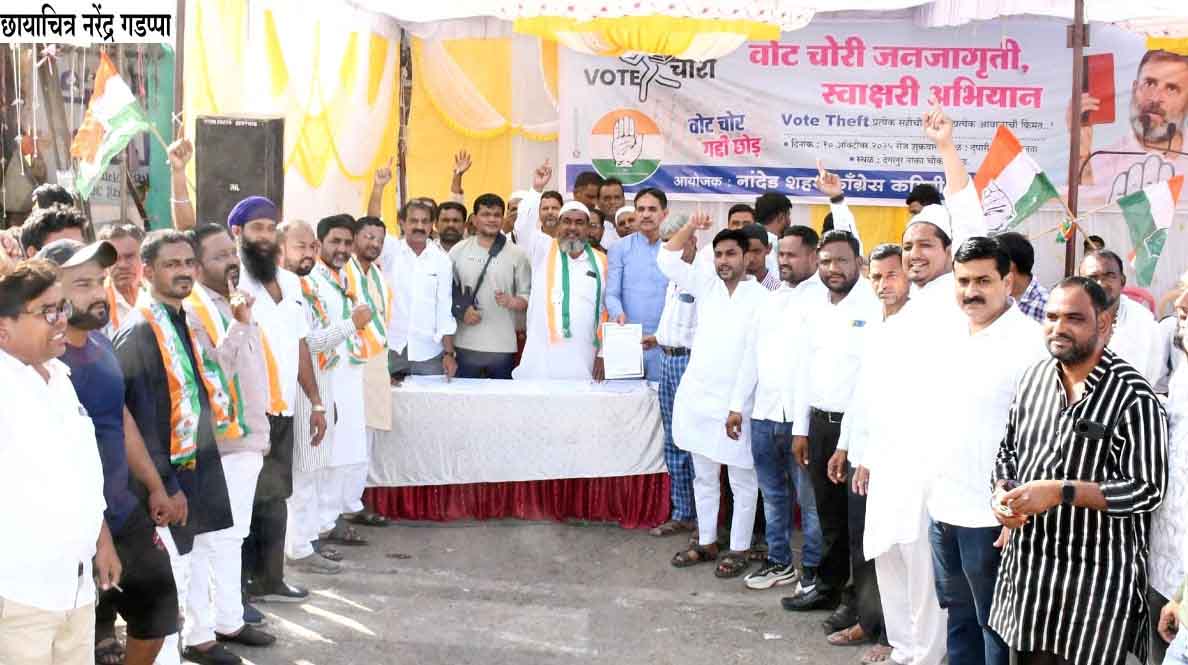 ناندیڑ:10؍ اکتوبر ( نامہ نگار ):کانگریس کے لیڈر اور لوک سبھا کے اپوزیشن لیڈر راہول گاندھی نے پچھلے دنوں بی جے پی کی جانب سے ملک بھر میں کس طرح سے ووٹ چوری کر کے کامیابی حاصل کی جارہی ہے اس کا پردہ فاش کیا ہے۔ راہول گاندھی نے پچھلے دنوں پریس کانفرنس لے کر ثبوتوں کے ساتھ ووٹ چوری کے معاملوں کو میڈیا کے سامنے پیش کیا۔ کرناٹک کے ایک اسمبلی میں دیگر ریاستوں کے لوگوں کے نام بطو ر ووٹ شامل کئے گئے اسی طرح مہاراشٹرا میں لوک سبھا انتخابات میں مہا وکاس آگھاڑی کو اکثریت ملی تھی مگر چھ ماہ کے بعد اسمبلی الیکشن میں بی جے پی کی مہا یوتی کو اکثریت ملی جس کے بعد یہ بات سامنے آئی تھی کہ چھ ماہ کے دوران مہاراشٹرا میں ۶۰؍ لاکھ نئے ووٹر شامل کئے گئے تھے۔ بی جے پی ووٹ چوری کے ذریعہ پارلیمنٹ اور اسمبلی کے الیکشن میں جیت حاصل کر رہی ہے اس طرح کے ثبوت راہول گاندھی نے پیش کر کے ملک بھر میں ووٹ چوری کے خلاف مہم شروع کی ہے۔ اسی کے تحت ناندیڑ میں دیگلورناکہ چوراستہ پر آج دستخطی مہم کا انعقاد کیا گیا تھا۔ کانگریس کے شہر صدر عبدالستار کی قیادت میں دستخطی مہم کا انعقاد عمل میں آیا۔ اس موقع پرسابق ڈپٹی میئر آنند چوہان، مسعود احمد خان، شمیم عبداللہ، عبدالغفار، سابق چیئرمن فاروق علی خان، سابق کارپوریٹر منتجب الدین، سید شیر علی، عبدالطیف، محمد ناصر، بابو بھائی کھوکھے والے، عبدالحبیب باغبان، سید فصیح الدین، عبدالرحیم، سید شعیب حسین ،منا عباس حسین، عبدالمختار،مہیش دیشمکھ، عزیز قریشی ، ایڈوکیٹ پرسن جیت، للیتا کمبھار، گگن یادو، سریش ہٹکر، دیپک حضوریا، وٹھل پائوڑے، امبا داس راتوڑے، واجد انصاری، انیس سیٹھ، عبدالوہاب، شیخ محسن، رفیق پٹھان، شیخ اظہر، سنجے شرما، سنتوش کامبڑے و دیگر موجود تھے۔ اس موقع پر کانگریس قائدین نے اپنے خیالات کا اظہار کیا اور عوام سے اپیل کی کہ وہ ووٹ چوری کے خلاف متحد ہو کر بی جے پی کے خلاف آواز اٹھائے۔ اس موقع پر ووٹ چور گدی چھوڑ ، مودی کی تانہ شاہی نہیں چلے گی جیسے نعرے لگائے گئے۔ علاقہ کے لوگوں نے بڑی تعداد میں دستخطی مہم میں بڑھ چڑھ کر حصہ لیا۔ راہول گاندھی کی ووٹ چوری کے خلاف جاری مہم کی تائید کرتے ہوئے ہزاروں لوگوں نے اپنی دستخطیں میمورنڈم پر دی ۔