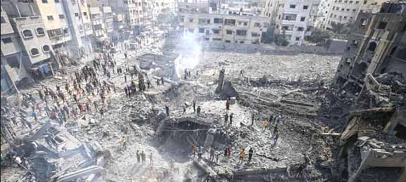 جنیوا:6؍جنوری:انسانی حقوق کی تنظیم یورو- میڈیٹیرینین ہیومن رائٹس آبزرویٹری نے کہا ہے کہ غزہ کی پٹی کی کل آبادی کا تقریبا 4 فی صد یعنی 90,000 سے زیادہ افراد شہید، لاپتہ یا زخمی ہو چکے ہیں، جن میں طویل مدتی معذوری کے شکار افراد بھی شامل ہیں۔یورو- میڈیٹیرینین آبزرویٹری نے جمعہ کو ایک بیان میں روشنی ڈالی اور کہا کہ اسرائیل کے فضائی، زمینی اور سمندری حملوں نے 7 اکتوبر سے غزہ کی پٹی میں تقریبا 70 فیصد شہری تنصیبات اور بنیادی ڈھانچے کو تباہ کر دیا ہے۔ایسا لگتا ہے کہ اسرائیل شہری آبادی کے خلاف اجتماعی سزا اور غزہ کی پٹی کو 17 سال سے زائد عرصے سے محصور کر کے لاکھوں شہریوں کو بڑے پیمانے پر جبری بے گھر ہونے کی طرف دھکیل رہا ہے۔یورو- میڈیٹیرینین آبزرویٹری نے کہا کہ اس کے ابتدائی اعدادوشمار بتاتے ہیں کہ جمعرات کی شام تک 30,676 فلسطینی شہید ہو چکے ہیں۔ غزہ کی پٹی پر اسرائیلی فضائی اور توپخانے کے حملوں کے متاثرین میں سے 28,201 عام شہری شہید ہوئے۔ ان میں 12,040 بچے، 6103 خواتین شامل ہیں۔ 241 ہیلتھ ورکرز اور 105 صحافی شامل ہیں۔ 58,960 زخمی ہوئے جن میں سینکڑوں کی حالت تشویشناک ہے۔فلسطینی وزارت صحت کے اعدادوشمار کے علاوہ ہزاروں متاثرین کی تعداد جو اب بھی تباہ شدہ عمارتوں کے ملبے کے نیچے ہیں اور جو 14 دنوں سے زیادہ عرصے سے ملبے تلے دبے ہوئے ہیں۔انہوں نے خبردار کیا کہ لاپتہ افراد کی سینکڑوں لاشیں گلیوں اور سڑکوں پر پڑی ہیں اور انہیں اٹھایا نہیں جا سکتا، جبکہ انہیں ابھی تک متاثرین کی تعداد میں قطعی طور پر شامل نہیں کیا جا سکتا۔یورو-میڈیٹیرینین آبزرویٹری نے اطلاع دی ہے کہ غزہ کی پٹی میں تقریبا 20 لاکھ 9300 فلسطینی اپنے گھروں اور رہائشی علاقوں سے بے گھر ہو گئے ہیں اور ان کے لیے محفوظ پناہ گاہیں دستیاب نہیں ہیں، جب کہ جاری اسرائیلی بمباری سے تقریبا 67،946 مکانات مکمل طور پر تباہ ہو گئے ہیں، 179،750 رہائشی یونٹس جزوی طور پر تباہ ہو گئے ہیں۔ انہوں نے وضاحت کی کہ اسرائیل نے جان بوجھ کر غزہ کی پٹی میں بنیادی ڈھانچے کو تباہ کیا اور انہیں شدید نقصان پہنچایا، جس میں 318 اسکولوں، 1612 صنعتی تنصیبات اور 169 صحت کی سہولیات کو نشانہ بنایا گیا، جن میں 23 ہسپتال، 57 کلینک، 89 ایمبولینس، 201 مساجد اور 3 چرچ شامل ہیں۔ 169 پریس اینڈ میڈیا ہیڈ کوارٹر کو تباہ کیا گیا۔