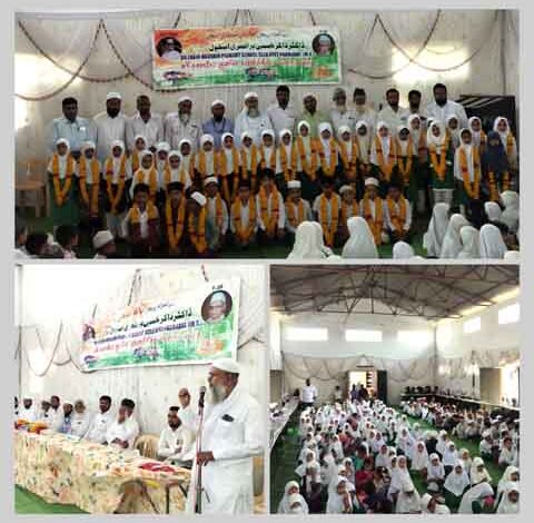 سیلو:4؍اپریل (ضلع نامہ نگار اعتبار نیوز محمد سرور شریف پربھنی)پربھنی ایجوکیشن سوسائٹی پربھنی کے زیرِ انتظام چلنے والے معروف تعلیمی ادارے ڈاکٹر ذاکر حسین پرائمری اسکول، سیلو میں طلبہ کے اندر دینی شعور بیدار کرنے اور ان کی حوصلہ افزائی کے لیے ایک پُر وقار ‘عید ملن اور ‘گل پوشی تقریب کا انعقاد کیا گیا۔ اس تقریب میں ماہِ رمضان المبارک کے تمام روزے رکھنے والے 51 خوش نصیب طلبہ اور زندگی کا پہلا روزہ رکھنے والے 45 کمسن بچوں کو نقد انعامات اور گل پوشی کے ذریعے نوازا گیا۔پروگرام کی صدارت مولانا محمد رئیس قاسمی صاحب (امام مدینہ مسجد) نے فرمائی۔ مہمانِ خصوصی کے طور پر مولانا محمد صادق ندوی صاحب (مہتمم دارالعلوم فرقانیہ)، جناب کلیم بیلدار صاحب (صدر بیلدار سیوا سمیتی، ضلع پربھنی)، شیخ شفیق صاحب (کونسلر)، شیخ جلیل صاحب (مینجر راحت بینک، سیلو)، شیخ ایوب صاحب اور ابرار بیگ صاحب جیسے شہر کے معززین نے شرکت کی اور بچوں کی ہمت افزائی کی۔ پروگرام کا باقاعدہ آغاز طالب علم انس شیخ انیس کی تلاوتِ کلام پاک سے ہوا، جبکہ شیخ عمیز اشفاق نے ترجمہ پیش کیا۔ آشیہ شیخ اشرف نے بارگاہِ الہیٰ میں حمد باری تعالیٰ اور علیشاہ ایوب پٹھان نے بارگاہِ رسالت ﷺ میں ہدیہ نعت پیش کیا۔ صدر مدرس جناب محمد عبدالعلیم صوفی نے پروگرام کے اغراض و مقاصد پر روشنی ڈالتے ہوئے بتایا کہ گزشتہ سال کی طرح اس سال بھی بچوں میں دینی جذبہ پیدا کرنے کے لیے یہ انعامی سلسلہ جاری رکھا گیا ہے۔مولانا صادق ندوی صاحب نے اپنے خطاب میں اس اقدام کو قابلِ ستائش قرار دیتے ہوئے کہا کہ اسکول کی جانب سے بچوں میں دینی بیداری پیدا کرنا وقت کی اہم ضرورت ہے۔ صدرِ مجلس مولانا رئیس قاسمی صاحب نے تمام اساتذہ اور سرپرستوں کا شکریہ ادا کرتے ہوئے بچوں کو دعاؤں سے نوازا۔ جناب کلیم بیلدار صاحب نے صدر مدرس عبدالعلیم صوفی کی کوششوں کو سراہتے ہوئے انہیں مبارکباد پیش کی۔پروگرام کی کامیابی کے لیے احمد سر، رضوان سر، حافظ جنید صاحب، سید شفیق صاحب، سید صابر صاحب اور تمام معلمات نے انتھک محنت کی۔ آخر میں صدر مدرس عبدالعلیم صوفی کے کلماتِ تشکر پر پروگرام کا اختتام ہوا۔ تقریب کے بعد تمام شرکاء کی تواضع شیر خورمے سے کی گئی، جس سے تمام مہمان و طلباء لطف اندوز ہوئے۔
