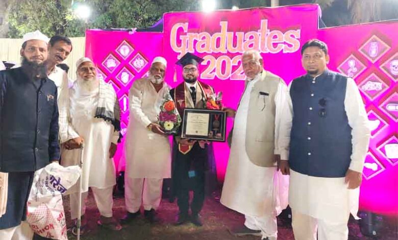 ملکاپور:27/ فروری ( محمد احسان سر ) الحاج محمد ابراہیم نور سابق پرنسپل زیڈ اے اردو ہائی اسکول و جونیئر کالج کے فرزند اور معروف شخصیت حاجی محمد عثمان ماسٹر کے بھتیجے ہونہار نوجوان ڈاکٹر محمد عادل محمد ابراہیم نور نے ایم بی بی ایس کی تعلیم ڈاکٹر الہاس پاٹل میڈیکل کالج و اسپتال جلگاؤں سے ( بیچ (2020) کامیابی کے ساتھ مکمل کرلی ہے. 26 فروری 2026 ، وقت شام کو باقاعدہ طور پر منعقدہ ( ادھیراتھ) کی گریجویشن پروقار تقریب ، فٹبال گراؤنڈ جلگاؤں میں معززین کے ہاتھوں ڈگری حاصل کرلی ہے۔ اس موقع پر حاجی رشید خان جمعدار سابق صدر بلدیہ ، حاجی محمد عثمان ماسٹر ، ساجد محمد خان، محمد رضوان مدرس, عبدالرحیم بابو ، محمد ذاکر کلیم نور ، ، رفیق سیٹھ تقریب میں خصوصی طور سے موجود تھے. اس شاندار کامیابی پر اہلِ خانہ، خاندان کو محلہ بارہ داری دوست و احباب اور شہر کے عام و خاص کی جانب سے مبارکبادیں کا سلسلہ جاری ہے. نیک بااخلاق ڈاکٹر محمد عادل کو اچھا دینی و تعلیمی ماحول ، بلند اخلاق، تعلیمی محنت، لگن اور مستقل مزاجی کے ذریعے انھوں نے یہ سنگِ میل عبور کیا۔ ان کی اس کامیابی کو نہ صرف ان کے خاندان بلکہ پورے علاقے کے لیے باعثِ فخر قرار دیا جا رہا ہے۔ تعلیمی حلقوں کا کہنا ہے کہ ڈاکٹر عادل کی یہ کامیابی نوجوان نسل کے لیے ایک روشن مثال ہے. والد محترم حاجی محمد ابراہیم نور ، بڑے ابو حاجی محمد عثمان ماسٹر و اہلِ خانہ نے خوشی کا اظہار کرتے ہوئے کہا کہ ڈاکٹر محمد عادل مستقبل میں انسانیت کی خدمت کو اپنا نصب العین بنائیں گے اور علاقے و اطراف میں صحت کی بہتر سہولیات کی فراہمی میں اہم کردار ادا کریں گے۔ شہر کی سماجی و تعلیمی شخصیات نے بھی ڈاکٹر محمد عادل محمد ابراہیم نور کو مبارکباد پیش کرتے ہوئے ان کے روشن مستقبل کے لیے نیک تمناؤں کا اظہار کیا ہے۔