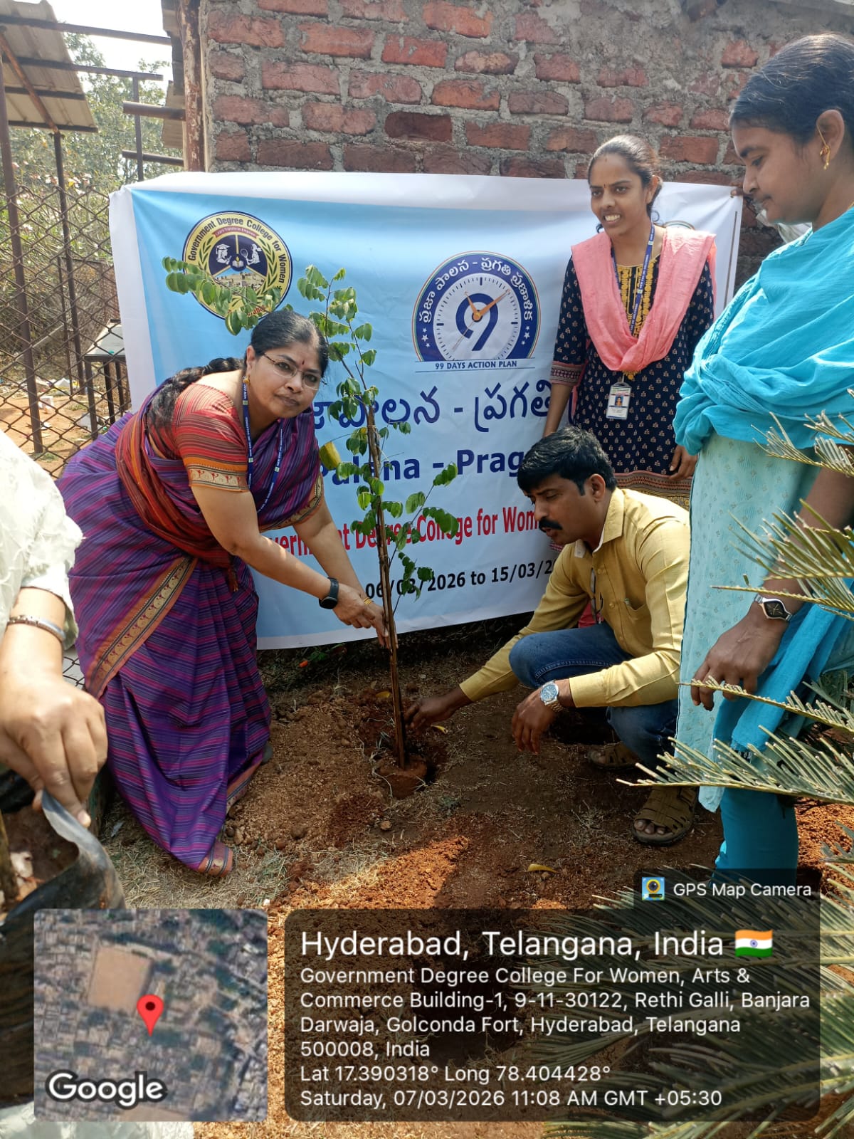 حیدرآباد۔7/مارچ(راست)حکومتِ تلنگانہ کے محکمہ تعلیم کی ہدایات کے مطابق پرجا پالنا۔ پرگتی پرنالیکا“ کے تحت 6 مارچ سے 15 مارچ تک 10 روزہ ریاست گیر خصوصی مہم کا باضابطہ آغاز کیا گیا ہے۔اس مہم کا بنیادی مقصد ریاست کے تمام سرکاری اسکولوں، کالجوں اور محکمہ تعلیم کے ماتحت دفاتر میں تعلیمی معیار کو بہتر بنانے کے ساتھ ساتھ ایک خوشگوار اور صحت مند ماحول فراہم کرنا ہے۔ اسی سلسلے میں، گورنمنٹ ڈگری کالج برائے اناث، گولکنڈہ کی پرنسپل پروفیسر ٹی۔سری لکشمی نے آج کالج میں ماحولیاتی تحفظ کے تحت شجرکاری کی پرنسپل صاحبہ نے کالج کے ہر کمرے کا معائنہ کیا اور صفائی کو یقینی بنایا۔ اس سرگرمی میں NSS یونٹ، تدریسی و غیر تدریسی عملہ اور طالبات نے بڑھ چڑھ کر حصہ لیا اور مشترکہ طور پر تمام کلاس رومز، لیبارٹریز، لائبریری اور دیگر کمروں کی مکمل صفائی کی۔