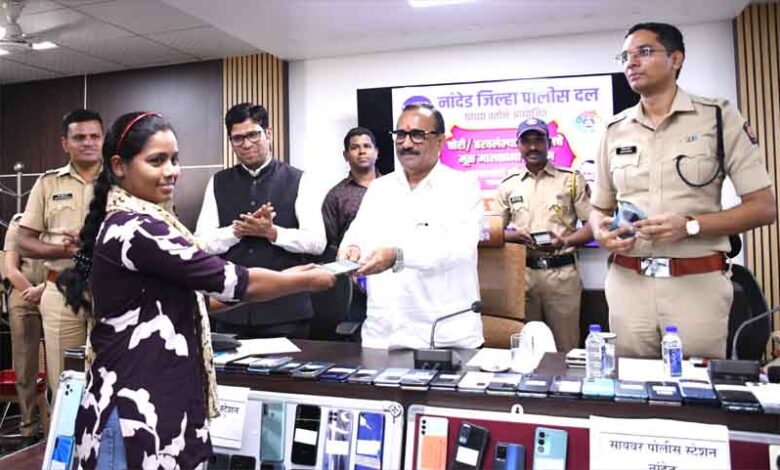 ناندیڑ :18؍اپریل ( نمائندہ اعتبار) ناندیڑ ضلع میں عوامی مقامات اور بازاروں سے گم یا چوری ہونے والے مہنگے موبائل فونز کی تلاش کے لیے خصوصی مہم چلانے کے احکامات سپرنٹنڈنٹ آف پولیس ابیناش کمار نے سائبر پولیس اسٹیشن کے پولیس انسپکٹر وسنت سپرے کو دیے تھے۔ اس کے مطابق سائبر پولیس اسٹیشن ناندیڑ، لوکل کرائم برانچ اور ضلع کے تمام پولیس اسٹیشنوں کی ٹیمیں تشکیل دے کر گمشدہ اور چوری شدہ موبائل فونز کی تلاش کے لیے مہم شروع کی گئی۔اس مہم کے دوران جنوری 2026ء سے اب تک ضلع ناندیڑ کے مختلف مقامات سے گم اور چوری شدہ موبائل فونز تلاش کر کے مجموعی طور پر 303 موبائل فونز، جن کی مالیت 46,03,000 روپئے ہے، برآمد کیے گئے۔ ان تمام موبائل فونز کو آج ایک مشترکہ تقریب میں سرپرست وزیر اتل ساوے کے ہاتھوں ’’مشن سہاگ‘‘ اور’’مشن سمادھان‘‘ کے تحت اصل مالکان کے حوالے کیا گیا۔ برآمد شدہ موبائل فونز کے IMEI نمبرات ناندیڑ پولیس کے “Nanded Police” فیس بک پیج پر بھی جاری کیے گئے ہیں۔اسی طرح سپرنٹنڈنٹ آف پولیس کی رہنمائی میں 2025ء کے دوران 800 موبائل فونز، جن کی اندازاً مالیت 1 کروڑ 37 لاکھ روپئے ہے، برآمد کیے جا چکے ہیں۔یہ کارکردگی سپرنٹنڈنٹ آف پولیس ابیناش کمار، ایڈیشنل سپرنٹنڈنٹ آف پولیس بھوکر ڈاکٹر ارچنا پاٹل، ایڈیشنل سپرنٹنڈنٹ آف پولیس سورج گرو، ڈپٹی سپرنٹنڈنٹ آف پولیس (ہیڈکوارٹر) ڈاکٹر اشوینی جگتاپ اور پولیس انسپکٹر وسنت سپرے کی رہنمائی میں سائبر پولیس ٹیم کے افسران و اہلکاروں نے انجام دی ہے۔سپرنٹنڈنٹ آف پولیس ناندیڑ نے شہریوں سے اپیل کی ہے کہ وہ گم یا چوری شدہ موبائل فونز کی معلومات CEIR پورٹل پر اپلوڈ کریں۔ اس نمایاں کارکردگی پر سرپرست وزیر اتل ساوے نے پوری ٹیم کو مبارکباد پیش کی ہے۔
